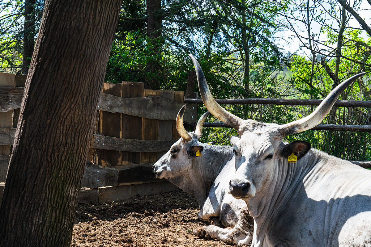 Con 80 ettari di boschi e prati, la nostra Fattoria accoglie al suo interno oltre 350 capi di bestiame: pecore biellesi, capre della Val Nerina, bovini romagnoli, piemontesi e bianchi modenesi, maiali neri di Parma, di Cinta senese e Mora romagnola, cavalli, asini…